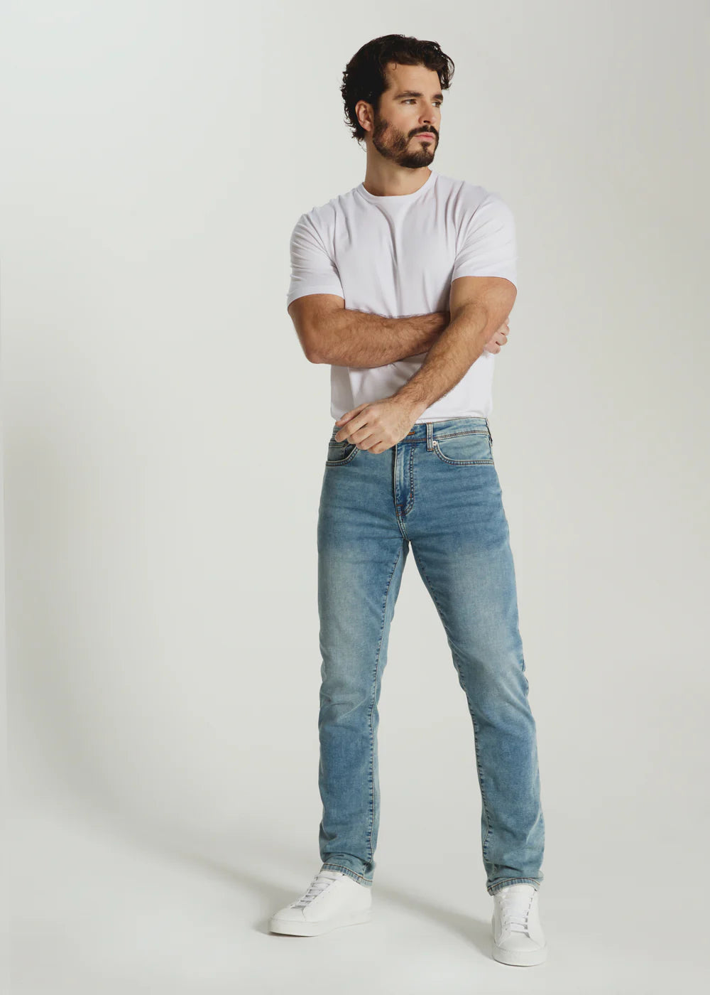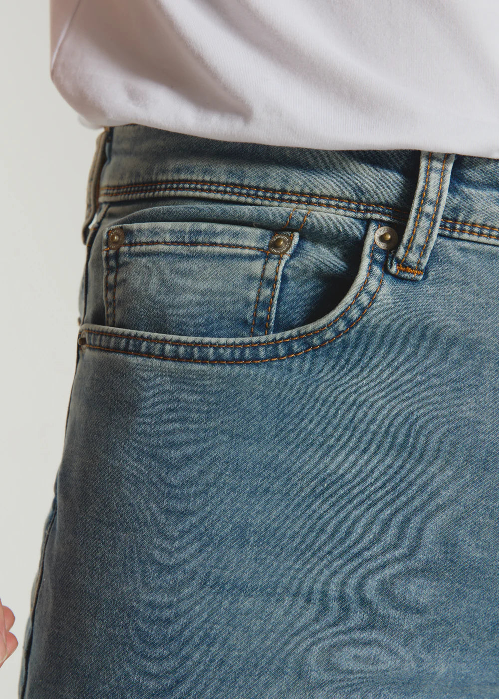 We have combined true indigo yarn with our incredibly soft stretch fabric creating a smarter, softer denim with all the details of your favorite jeans. A Classic 5-pocket silhouette with a straight fit and slightly tapered bottom offering comfort, freedom and signature performance all day long.