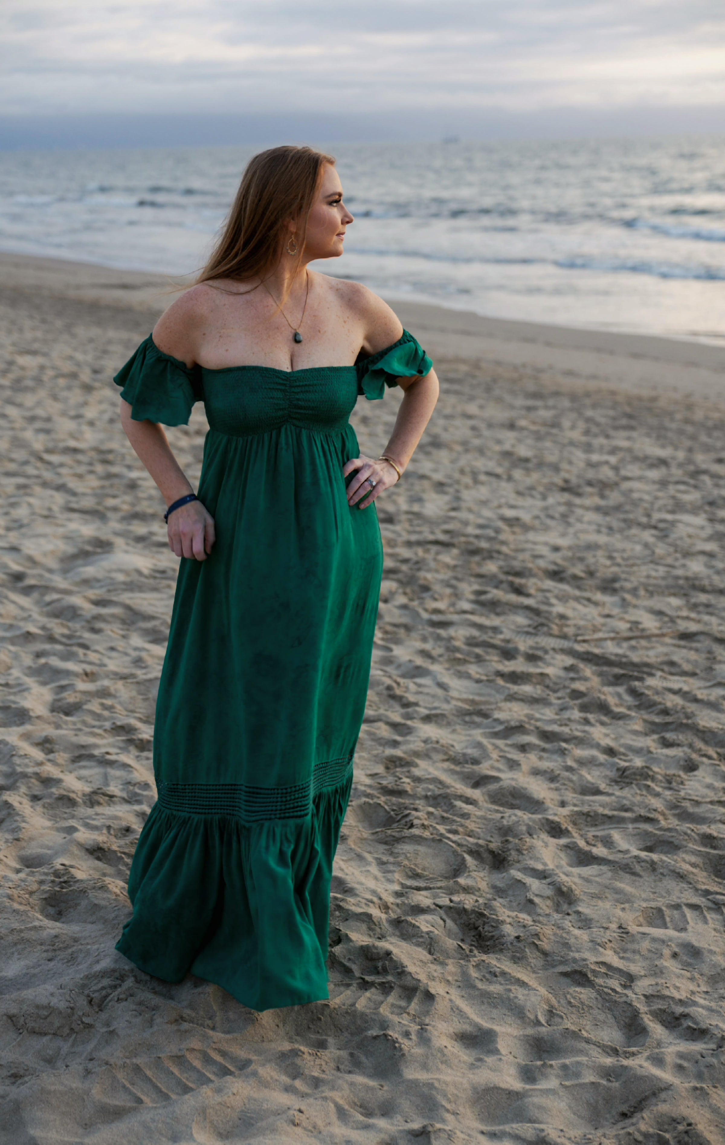 - Details: Bottom Ruffle, Lace Detail, Smocked Cinched Bodice, Strapless, Cap Sleeve, Maxi Dress