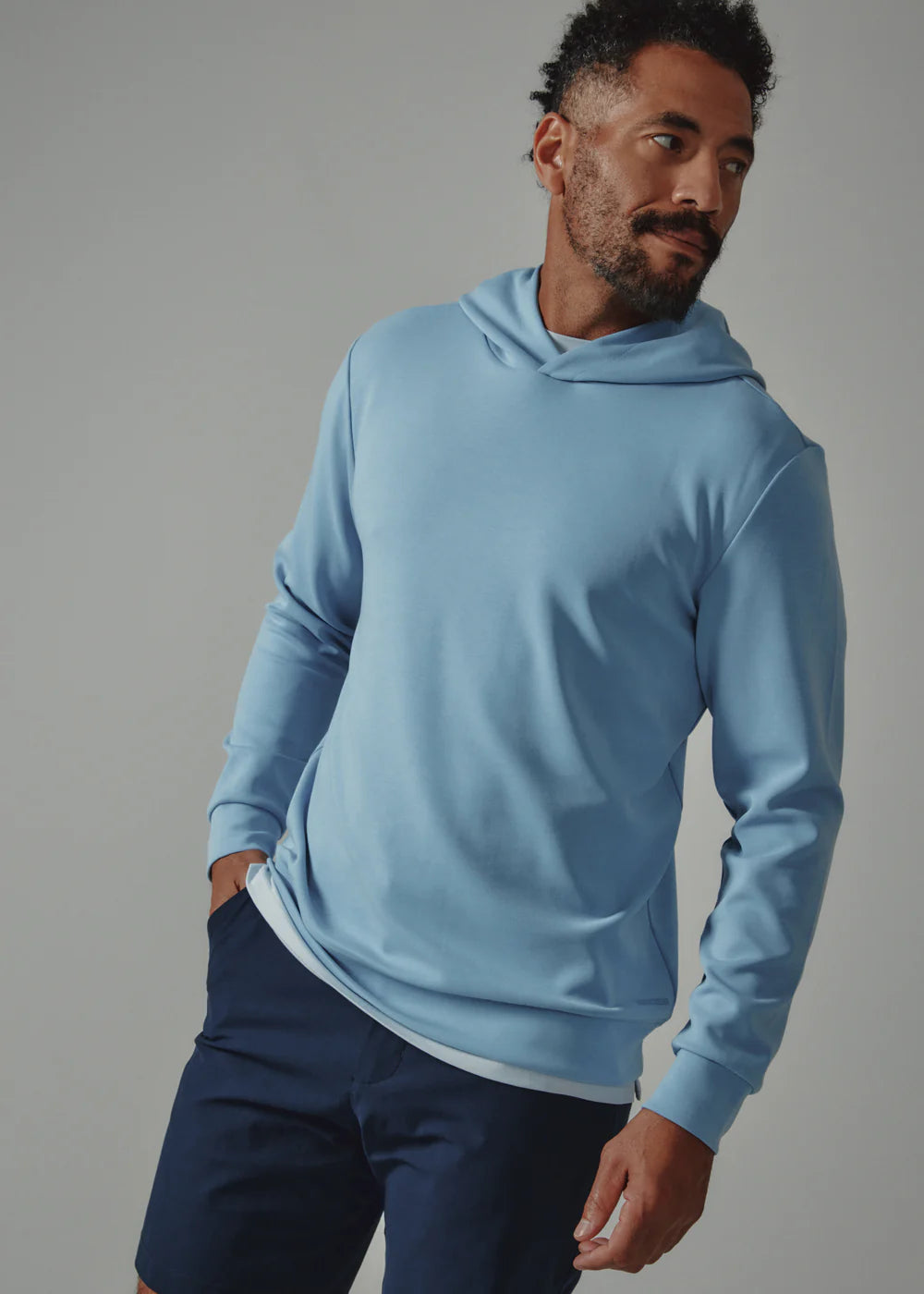 A contemporary relaxed hoodie that features barrel cuff and hem. Impossibly soft with the perfect amount of stretch and recovery. Wear by itself or under a jacket for a layered look.