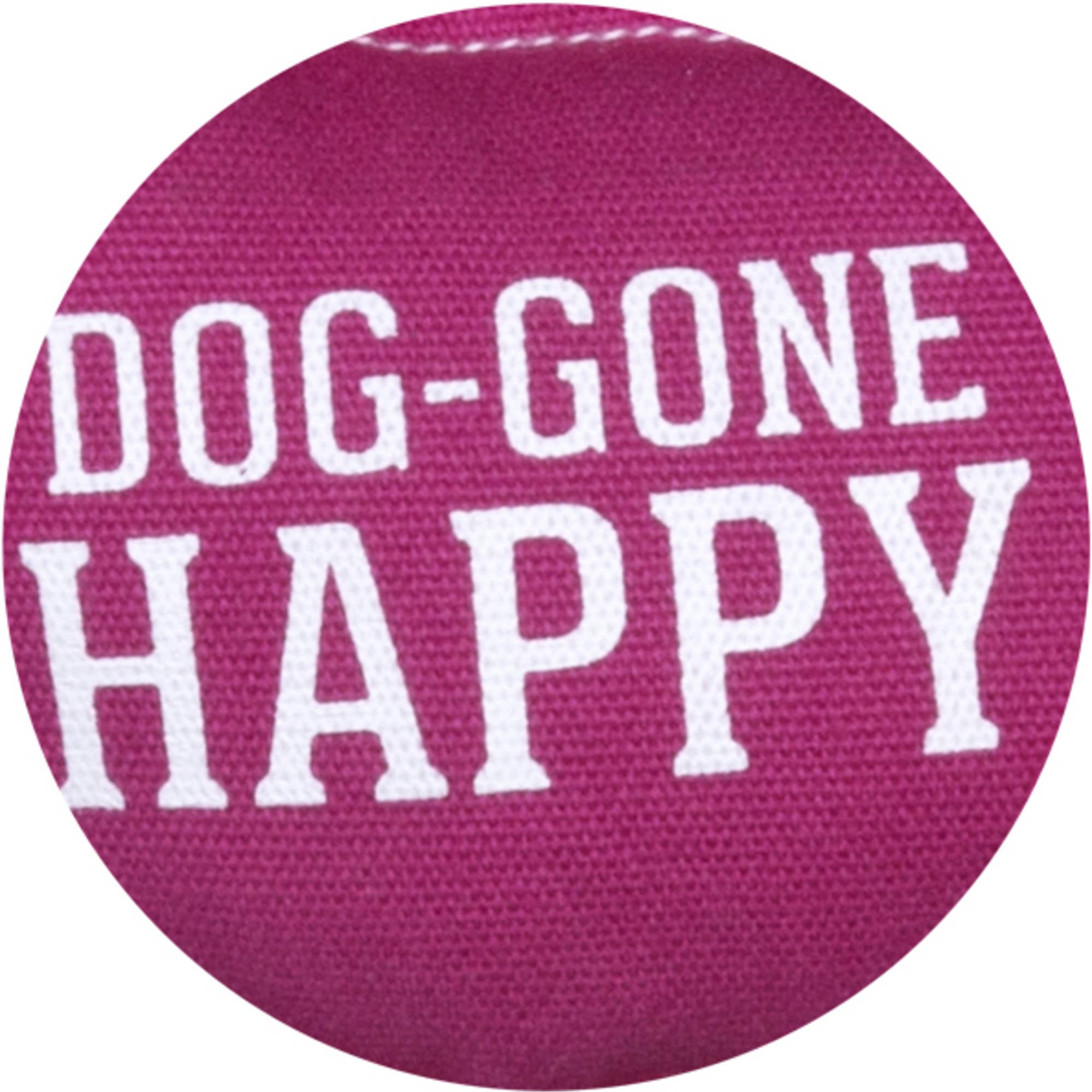 Flamingo-shaped dog toy, packaged in a plastic polybag, is made from a high-quality cotton and polyester blend with an inner made from poly-fill and a squeaker. "Dog-gone Happy" text and Dog People logo are both printed on the front of the toy, whereas the We Pets tag is sewn-in on the back. Wash by hand only with a damp cloth. Set out in the sun to dry. Great for a dog who is always happy.